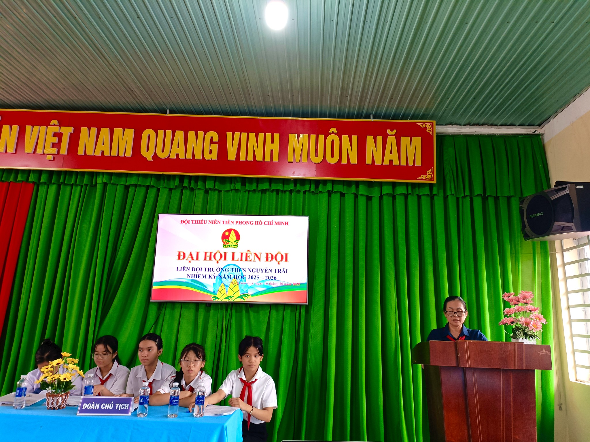 Chiều ngày 16/10/2025, thực hiện chương trình công tác Đội và phong trào Thiếu nhi năm học 2025-2026, Liên đội đã tổ chức thành công Đại hội Liên đội năm học 2025-2026.Về dự Đại hội có Cô Đỗ Thị Hạnh – Bí thư chi bộ – Hiệu trưởng nhà trường, thầy Phạm Thái Hoà – Phó bí thư chi bộ,phó hiệu trưởng nhà trường, Cô Nguyễn Thị Thanh Thúy – Bí thư chi đoàn, các thầy cô Phụ trách các chi đội và 32 đội viên tiêu biểu đại diện cho 690 đội viên trong toàn liên đội đã về dự đông đủ. Về dự và chỉ đạo đại hội, Cô Đỗ Thị Hạnh – Bí thư chi bộ – Hiệu trưởng nhà trường đã biểu dương, ghi nhận những kết quả mà Liên Đội đã đạt được và chỉ đạo BCH Liên đội khóa mới tiếp tục phấn đấu để gặt hái những thành công mới.