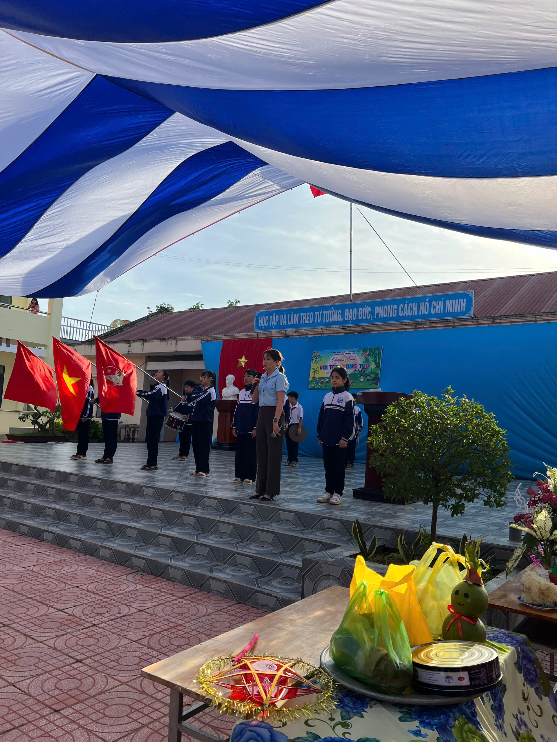 Chương trình được mở đầu bằng nghi thức chào cờ trang trọng theo nghi thức Đội. Trong không khí nghiêm túc và tự hào, các em học sinh khoác trên mình chiếc khăn quàng đỏ thắm cùng cất vang lời hát Quốc ca và Đội ca, thể hiện tinh thần đoàn kết và ý thức kỷ luật.