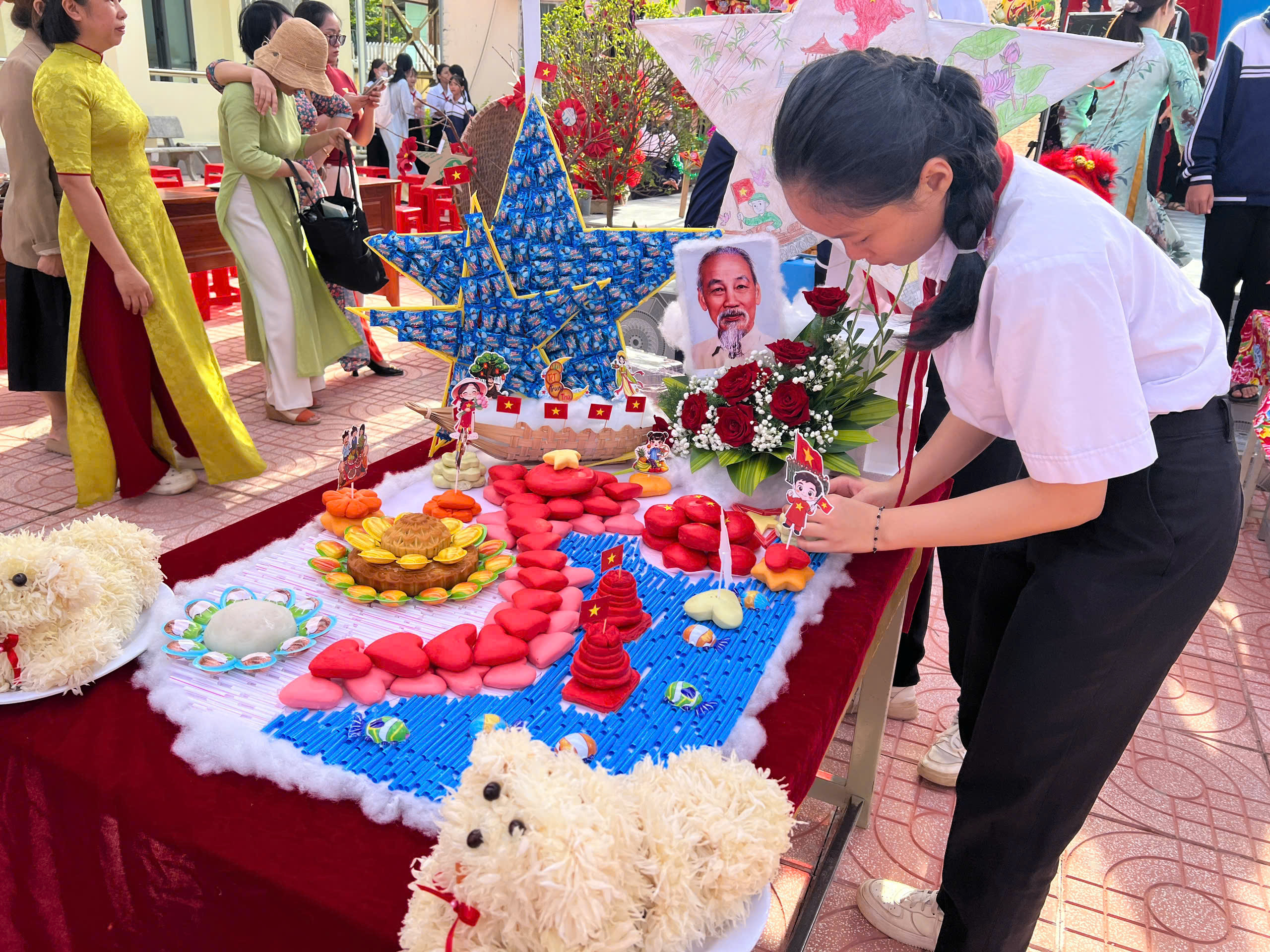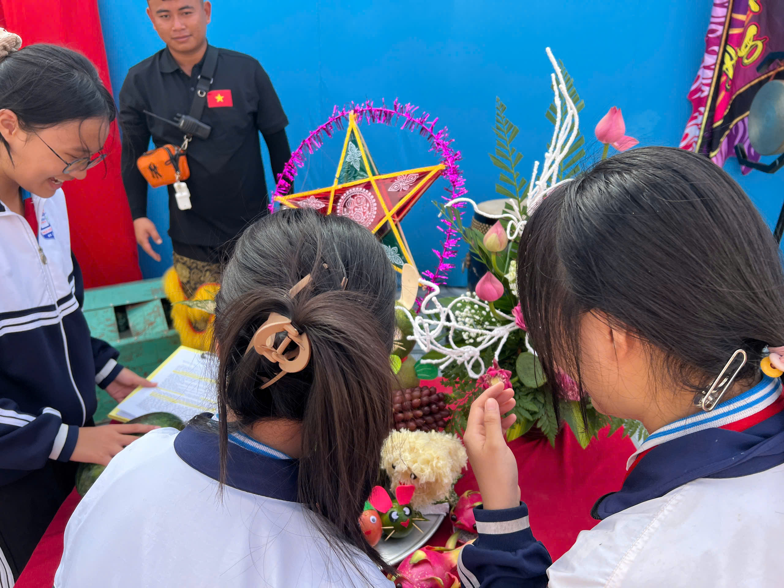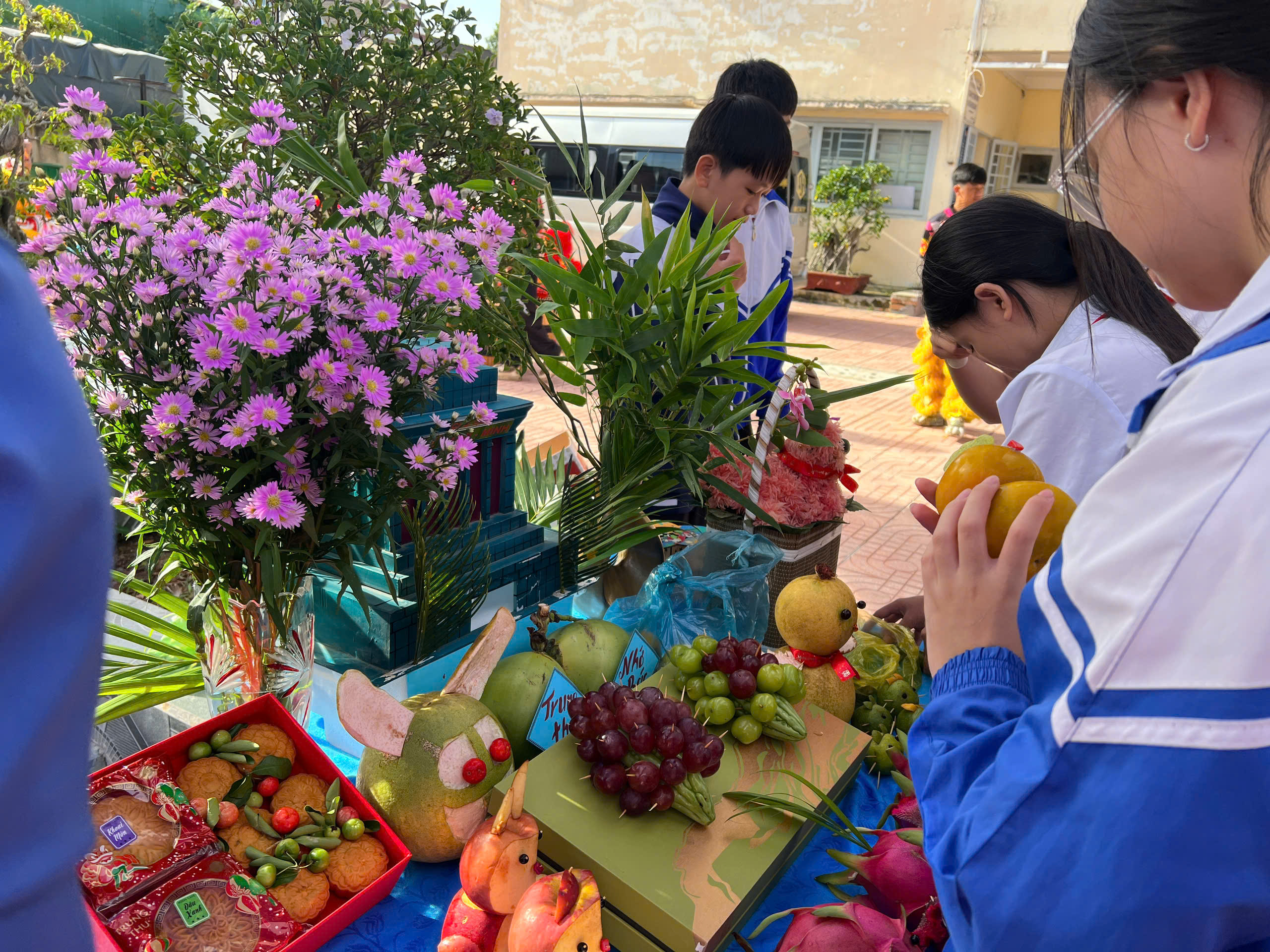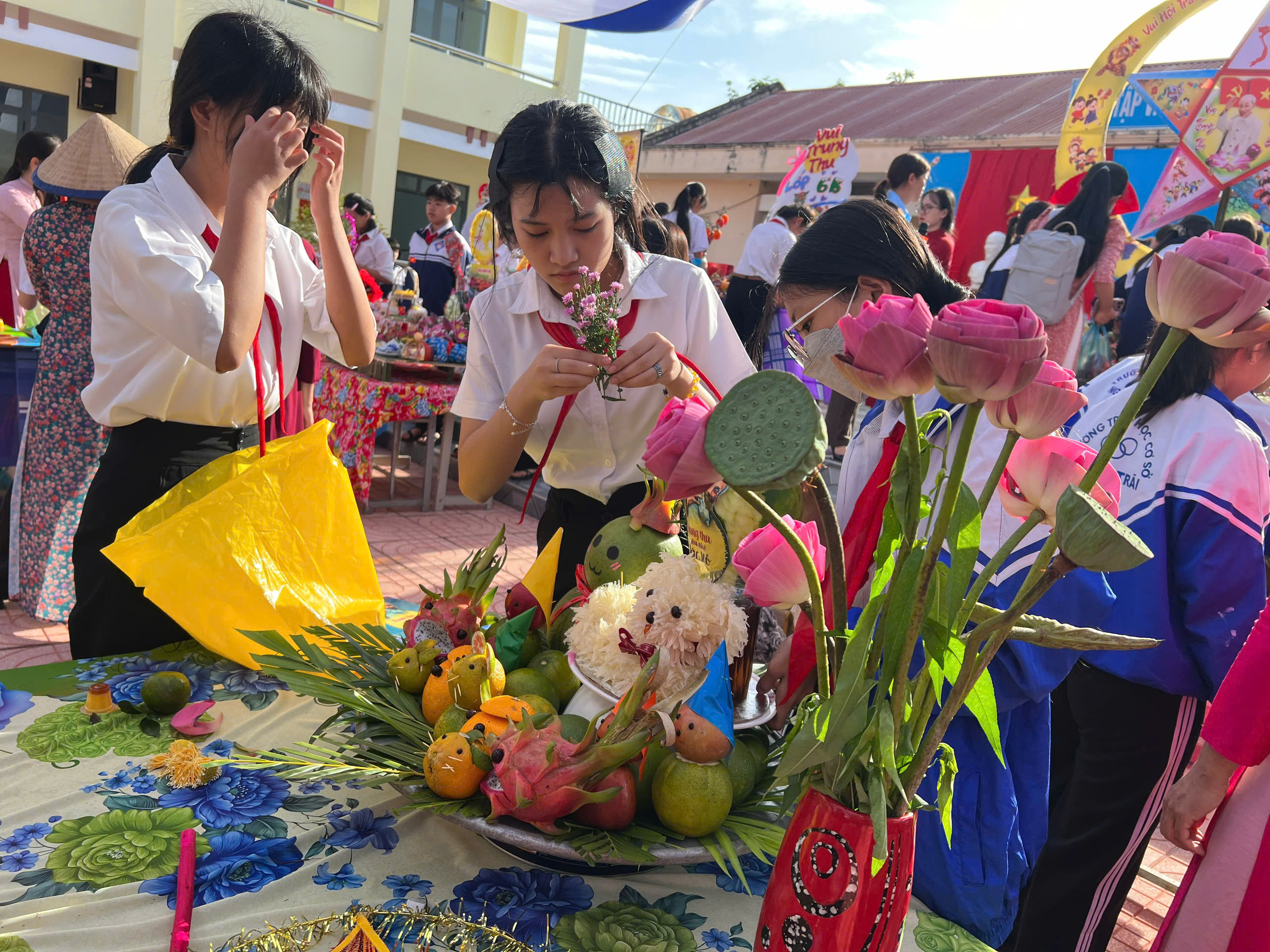 Điểm nhấn của ngày hội chính là cuộc thi trang trí mâm ngũ quả. Với sự khéo léo và óc sáng tạo không giới hạn, các lớp đã biến những loại hoa quả quen thuộc thành những tác phẩm nghệ thuật đầy màu sắc, mang đậm ý nghĩa truyền thống. Từ những chú chó bưởi ngộ nghĩnh, đàn thỏ con xinh xắn đến hình ảnh Vầng Trăng, Chú Cuội, Chị Hằng, tất cả đều thể hiện sự chuẩn bị công phu và tinh thần đồng đội cao.