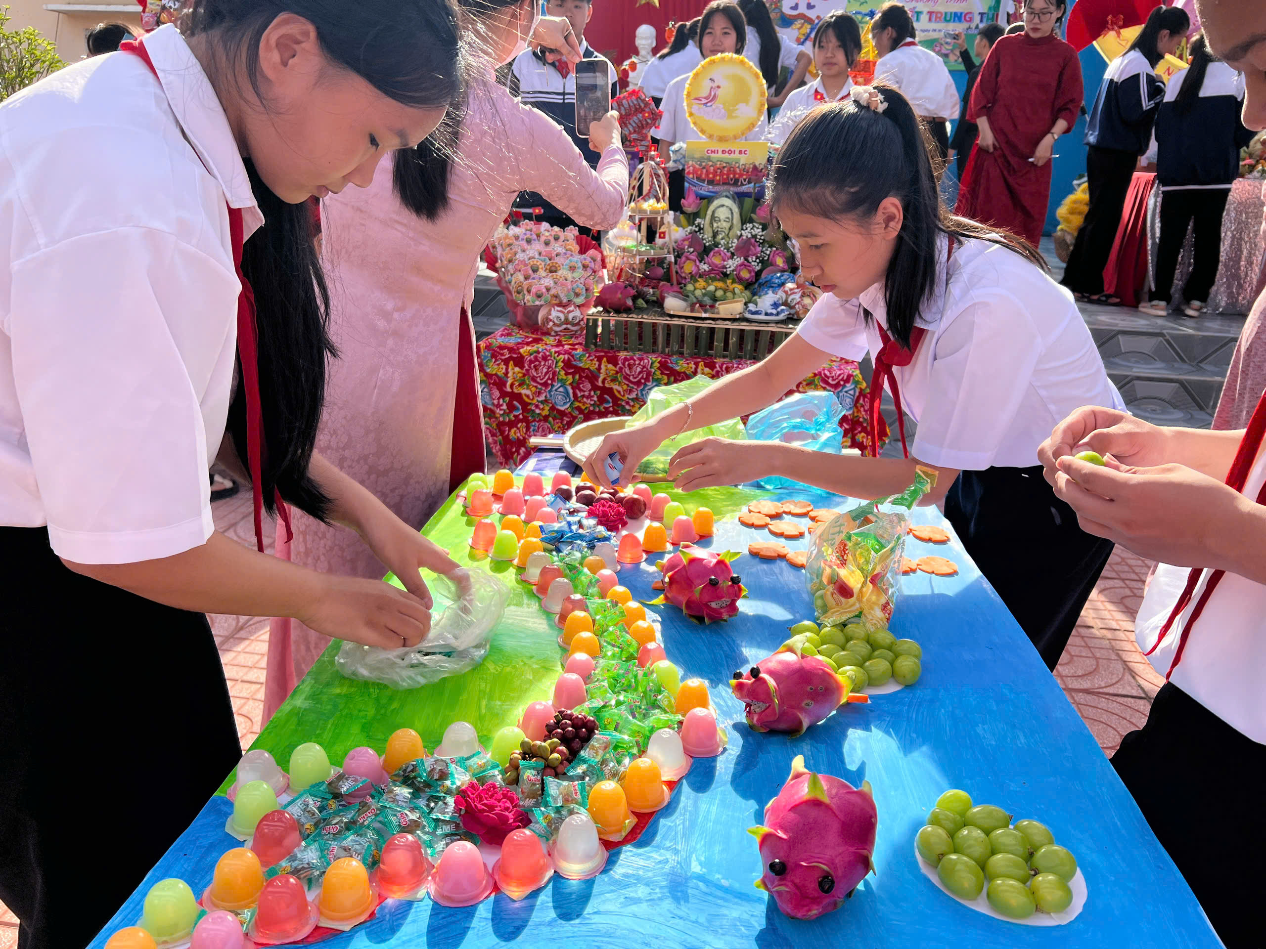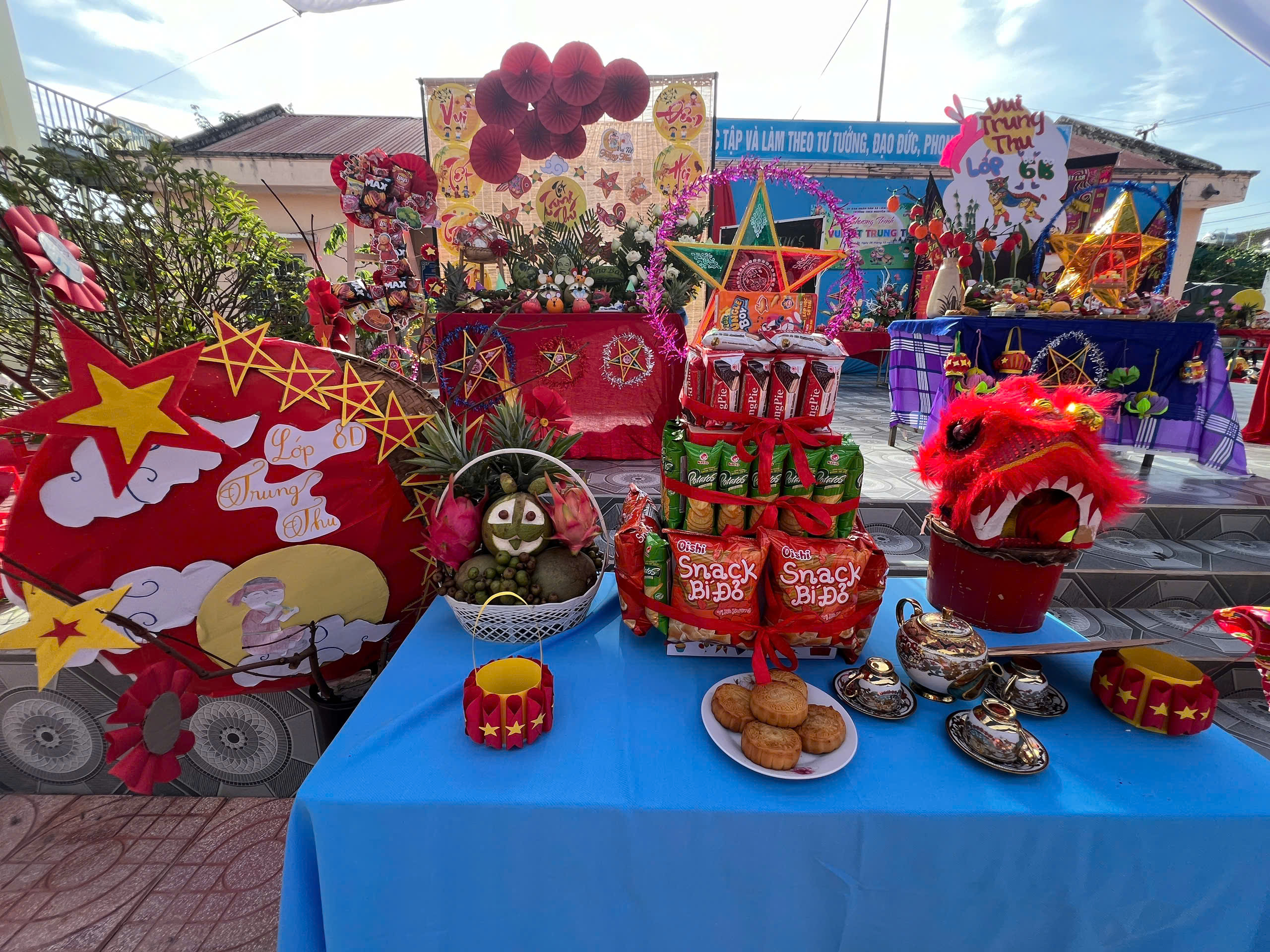 Cuối cùng, phần được mong chờ nhất đã đến: các lớp cùng nhau phá cỗ. Tiếng cười, tiếng trò chuyện râm ran hòa cùng hương thơm của bánh trung thu, kẹo và trái cây. Các em được cùng nhau thưởng thức thành quả sau những giờ phút vui chơi, gắn kết tình bạn, tình thầy trò trong không khí thân mật, ấm cúng của ngày rằm.