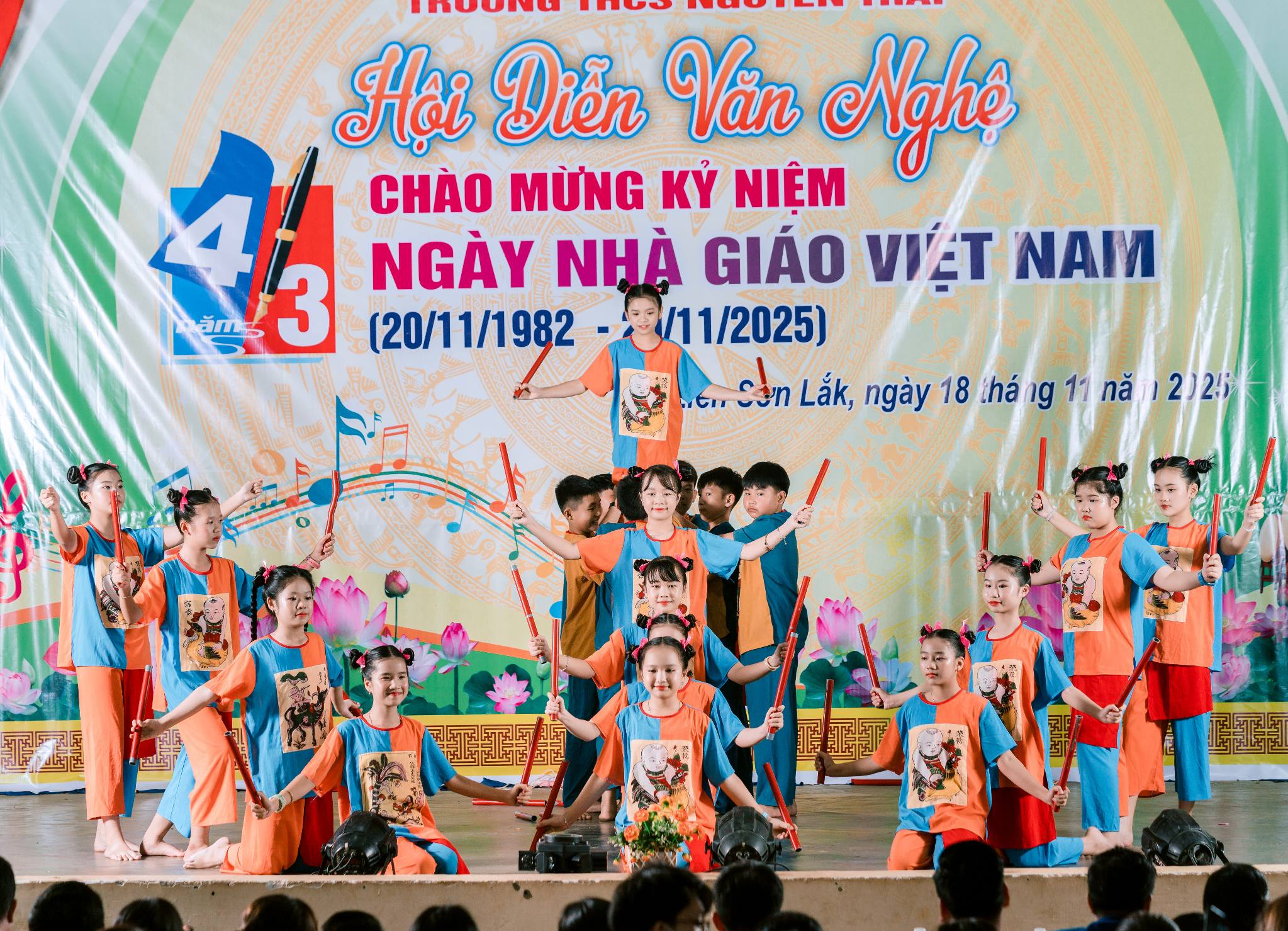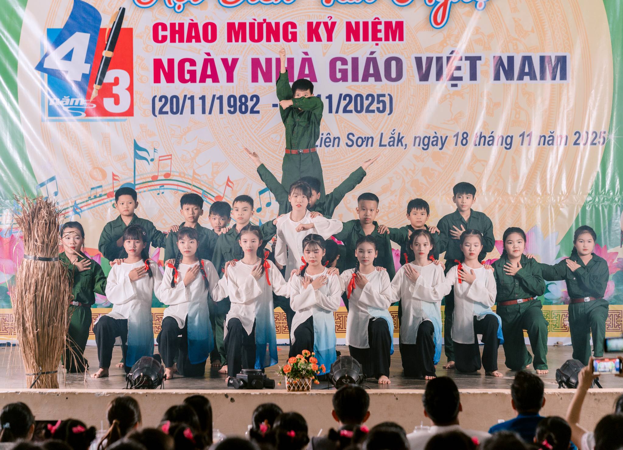Đêm Văn nghệ không chỉ là nơi các em học sinh thể hiện tài năng nghệ thuật mà còn là sân chơi giáo dục giá trị, giúp các em hiểu rõ hơn về truyền thống tốt đẹp của dân tộc và ý nghĩa cao cả của nghề giáo.