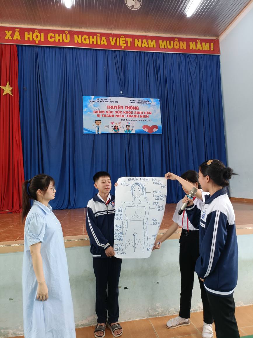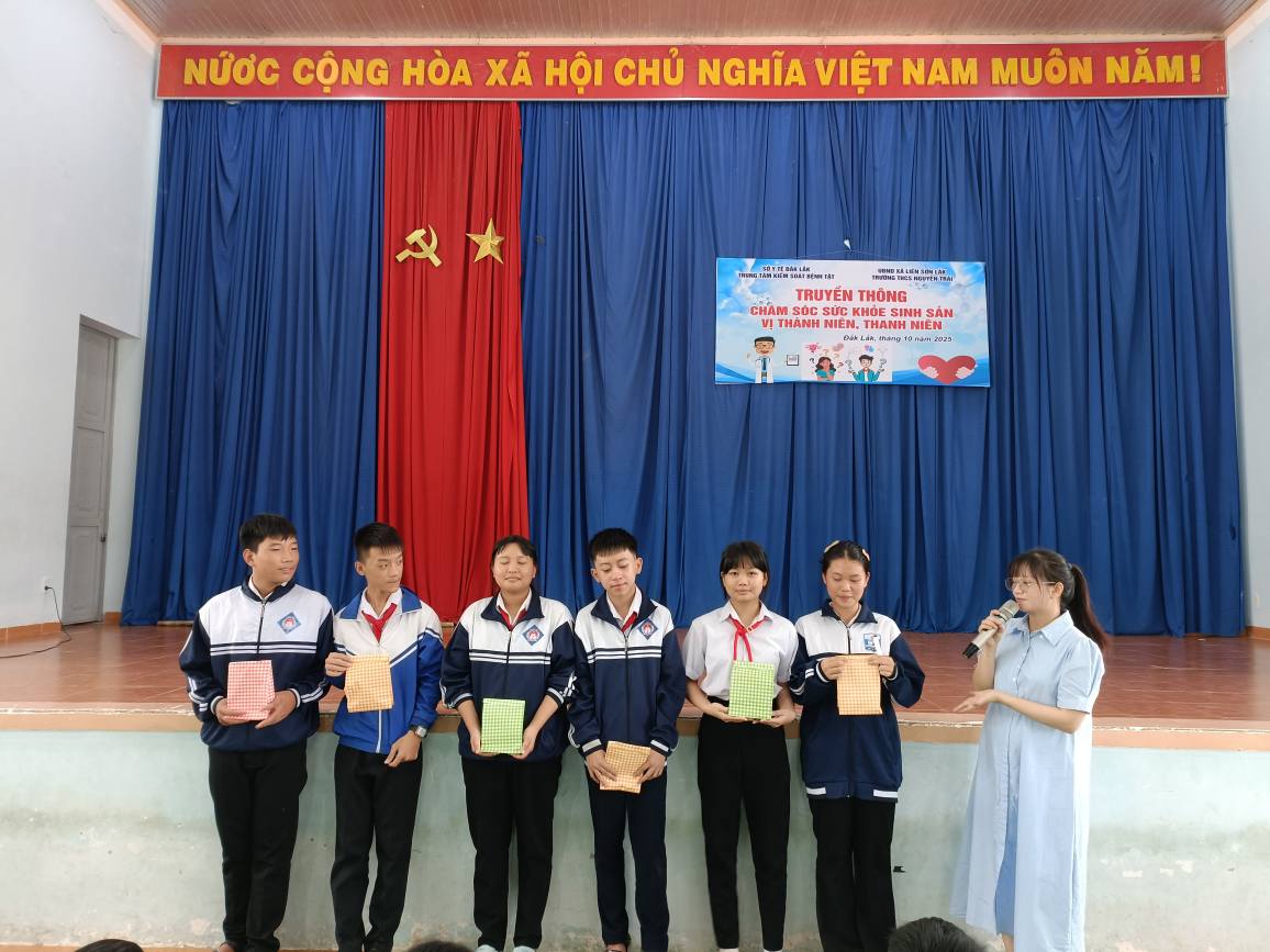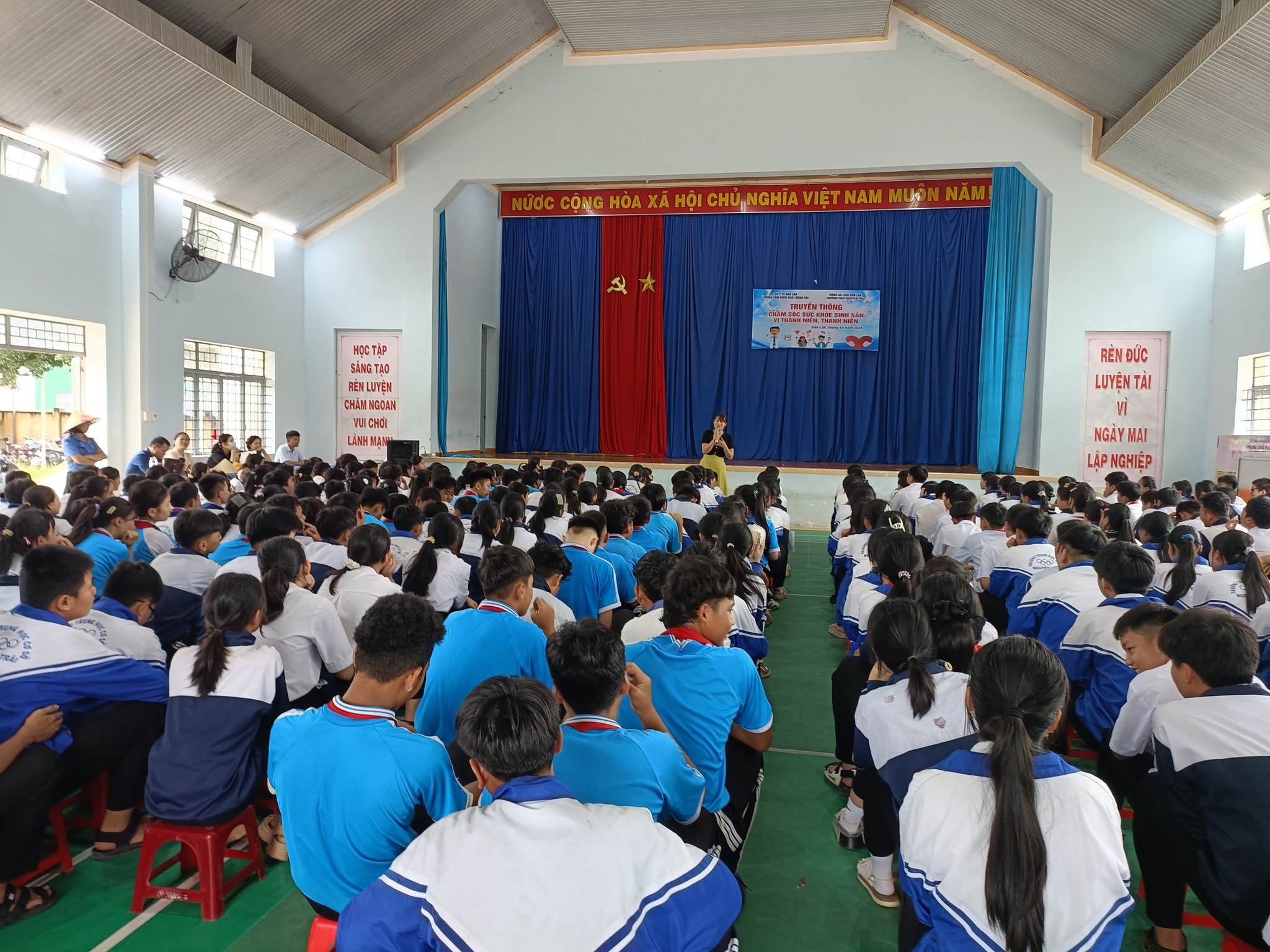 Sáng ngày 31/10/2025, tại Trường THCS Nguyễn Trãi, xã Liên Sơn Lắk, tỉnh Đắk Lắk, một hoạt động giáo dục đặc biệt và thiết thực đã diễn ra, thu hút sự tham gia của toàn bộ học sinh khối lớp 8 và 9. Hoạt động do TRUNG TÂM KIỂM SOÁT BỆNH TẬT (thuộc Sở Y tế tỉnh Đắk Lắk) phối hợp với Nhà trường tổ chức, tập trung vào công tác Truyền thông chăm sóc sức khỏe sinh sản vị thành niên, thanh niên.