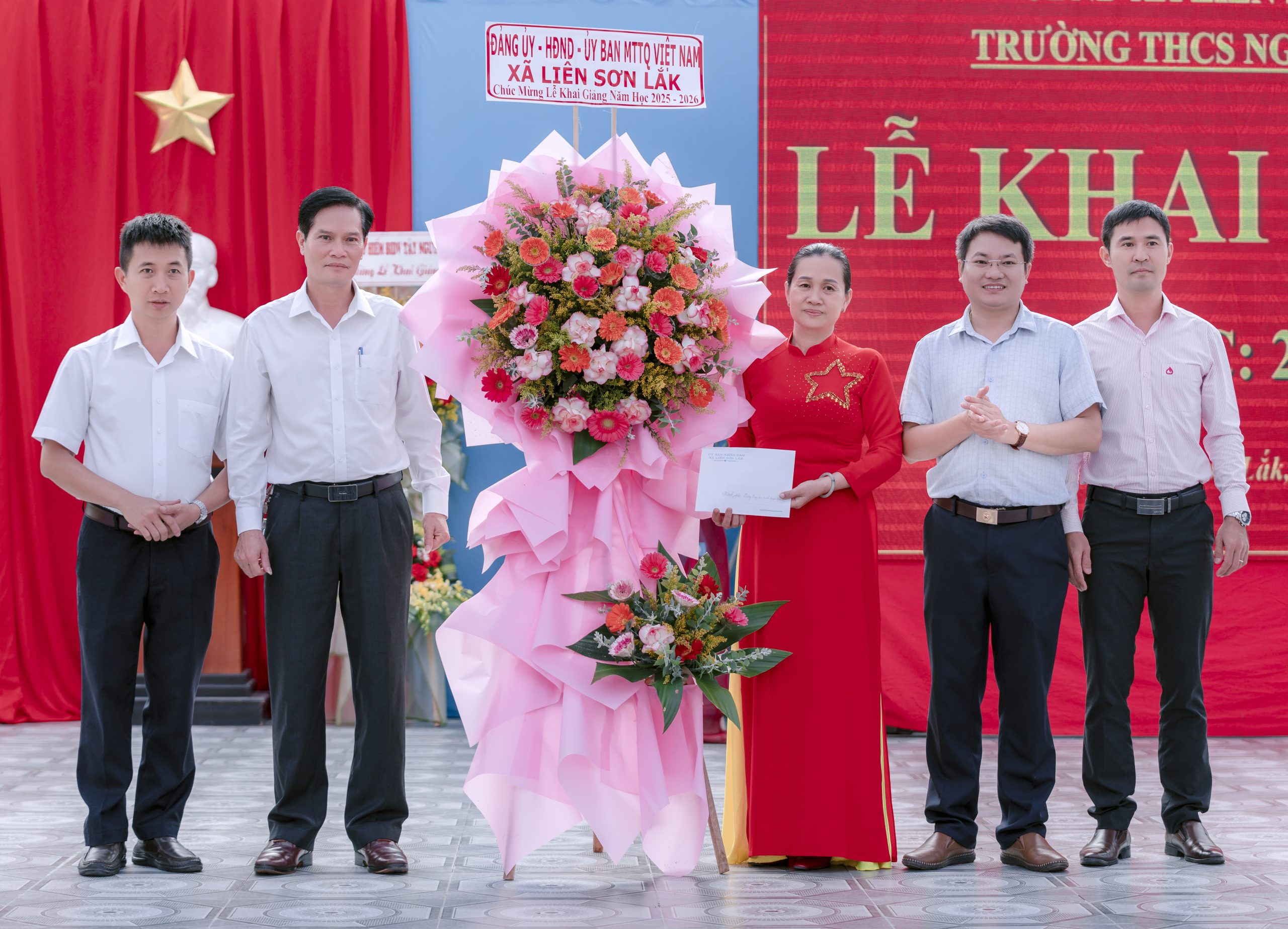 Tiếp nối chương trình, đồng chí Nguyễn Anh Tú, Phó BT Đảng ủy, Chủ tịch UBND Xã Liên Sơn Lắk, đại diện cho lãnh đạo địa phương, đã có bài phát biểu chỉ đạo và động viên. Đồng chí đã biểu dương những thành tích của nhà trường và khẳng định sự quan tâm sâu sắc của các cấp lãnh đạo đối với sự nghiệp giáo dục. Đồng chí cũng mong muốn toàn thể cán bộ, giáo viên, nhân viên nhà trường tiếp tục phát huy những kết quả đã đạt được, không ngừng đổi mới phương pháp dạy học để nâng cao chất lượng giáo dục toàn diện.